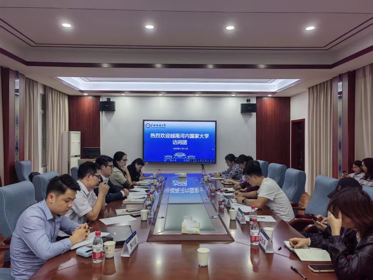 11月11日下午,中越语言文化研究合作交流研讨会在博文楼204会议室成功召开。本次研讨会由文学院主办,越南河内国家大学越南学与发展科学研究所所长范德英、主任冯氏清琳、副主任黎翠姮、副主任阮怀秋及教师李曰长等一行五人应邀参会,陆晓芹院长、何山燕副院长及李惠玲、黄可兴等教师代表共同出席研讨会。
