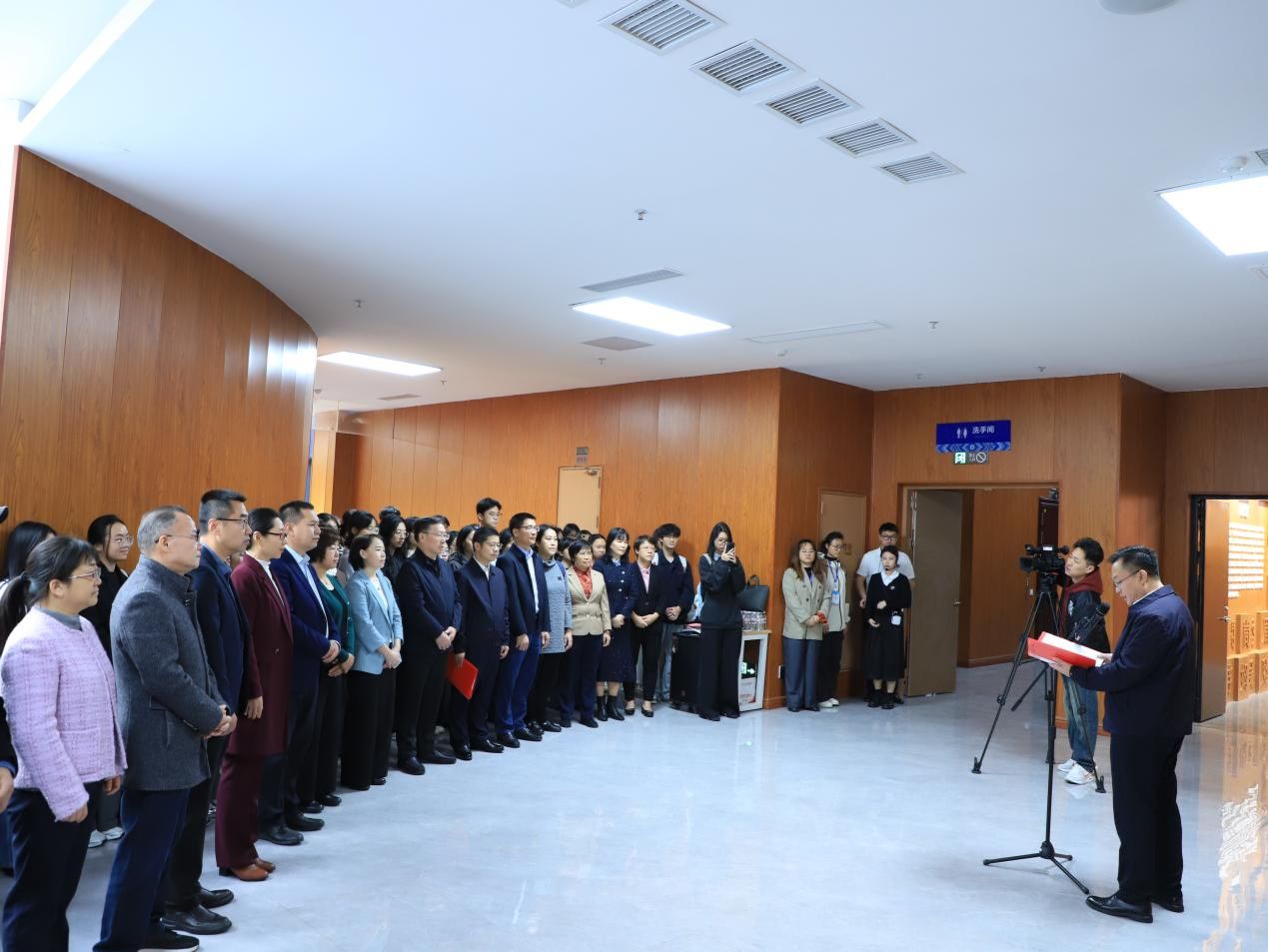 启幕仪式上,校党委副书记邓国彬、研究中心主任韦如柱、蒙古学学院党委书记八格、广西民族出版社副总编辑梁秋芬共同为文化展揭牌。邓国彬副书记在致辞中指出,汉字是多元文化载体,跨越地域与民族界限,印证中华民族多元一体文明格局,学校将以此次展览为契机,深化文字研究、创新传播形式,打造优质文化传播与学术交流平台,为推动构建人类命运共同体、促进世界文明多元发展贡献力量。八格书记表示,本次展览双方共同梳理从汉字到契丹文的文字发展脉络,展现中华民族多元一体格局,期待以此次合作为新起点,深化两校在文字研究、资源共享与人才培养等领域的合作,共同推动中华民族文字研究创新发展。