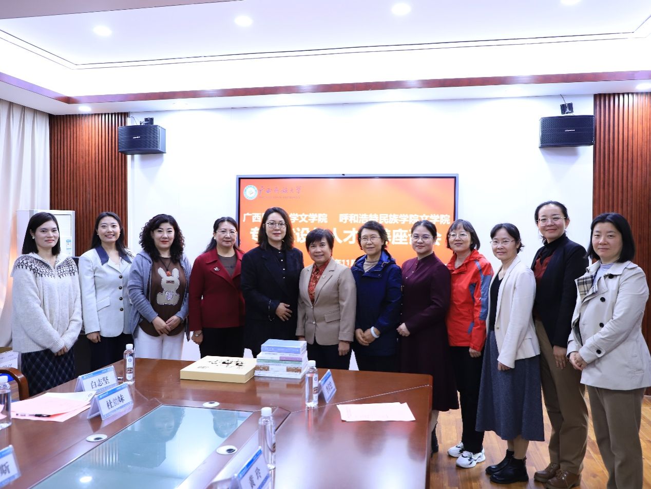 互动交流环节,双方围绕汉语言文学(含师范类)与汉语国际教育专业建设、人才培养、实践教学等议题展开探讨。李惠玲、李宗宏老师先后介绍汉语言文学、汉语国际教育两大专业的建设情况与发展规划。黄玲与朱映运老师分享学院在产学研融合与实践教学方面的经验,重点介绍民族古籍研究平台的建设成果与第二课堂活动的组织开展模式。呼和浩特民族学院文学院团队表示,希望通过此次交流学习,在学生写作能力培养、学科团队建设、实践基地运营等方面学习先进做法,提升发展水平。