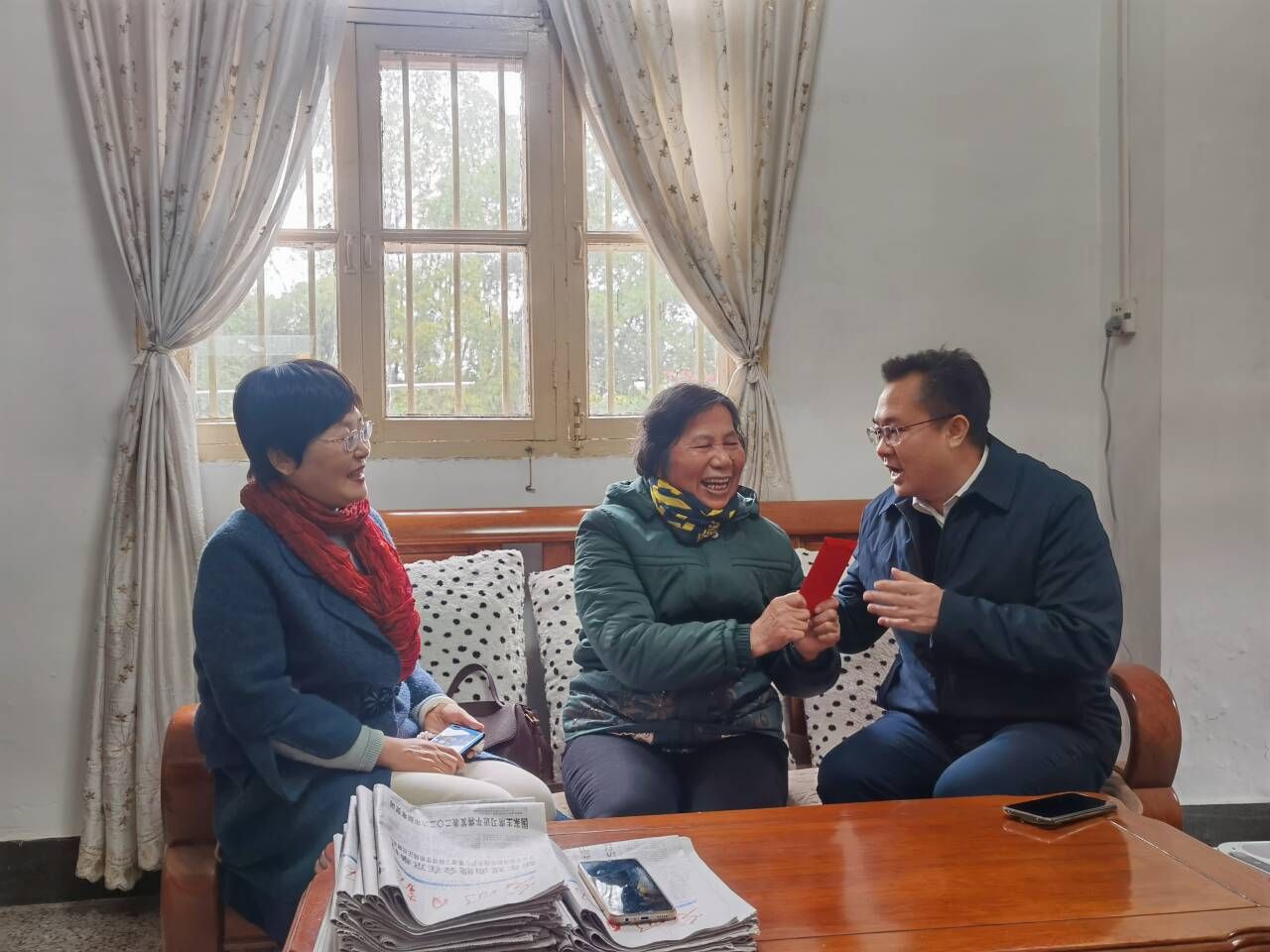 1月21日,唐艳军书记与行政教师代表慰问玉丽珍老师