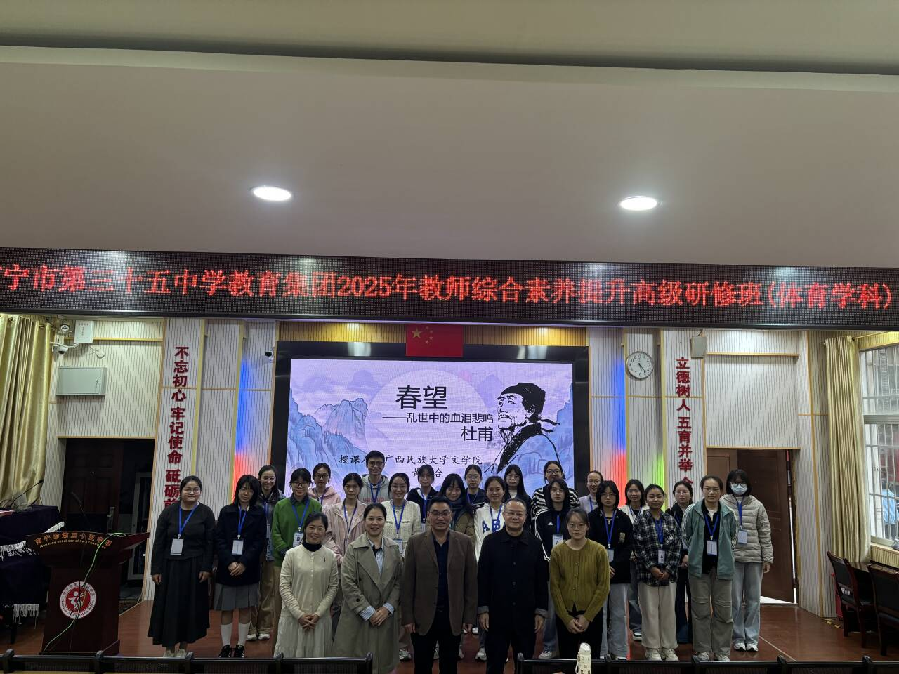 12月3日上午,一场聚焦语文教学的实习生汇报课在南宁市第三十五中学精彩开展。文学院党委副书记吴先源、带队指导老师赵筠,南宁三十五中校长唐秋生、教务主任黄婧琳,七八年级语文教研组部分教师及全体实习生共同参与,见证实习教师的实践成长。