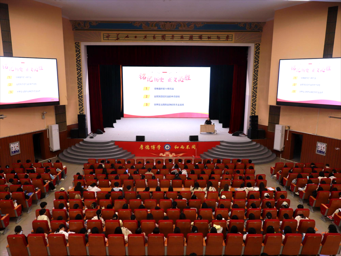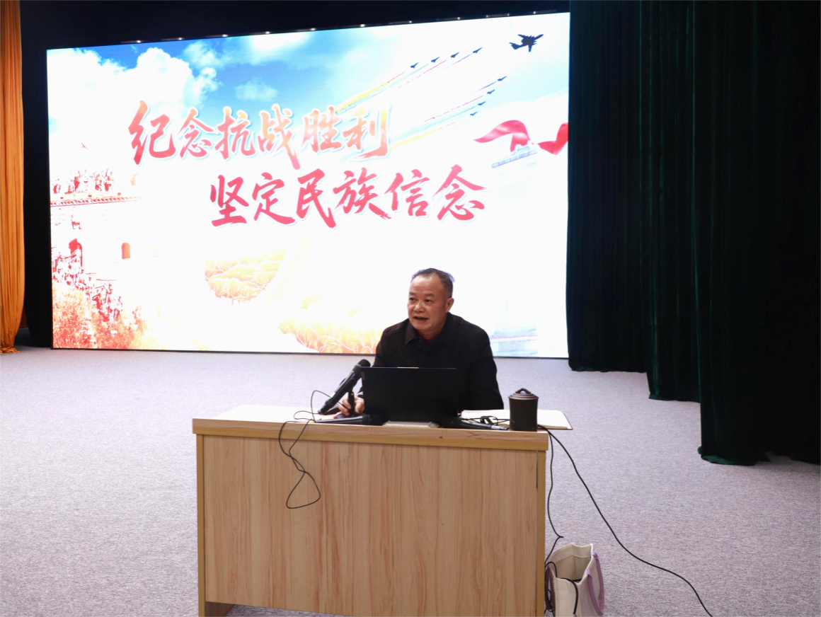 吴先源副书记结合丰富史料与生动案例,深入浅出地解读抗战精神的内涵与时代启示。他表示,抗战精神是中国人民弥足珍贵的精神财富,更是激励中国人民克服一切艰难险阻、实现中华民族伟大复兴的强大精神动力。最后,他寄语广大学子,青年学生要不忘昨日的苦难,无愧今天使命担当,爱国爱家爱校,培根铸魂立信。埋头苦干,开创未来,努力在新时代新征程上赢得更加伟大的胜利和荣光。