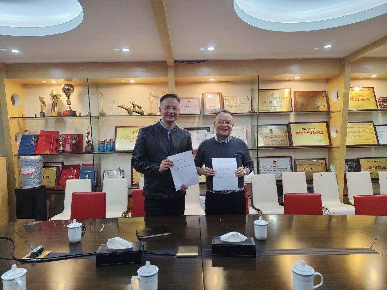 针对人才联合培养与校企合作,双方提出“理论+实践”双轨模式。首先是共建“诗舞剧”工作坊:双方以工作坊为平台,共同开展文学作品的创作、研讨以及舞蹈、编导等舞台艺术专业培训。其次是共建样板项目:文学院提供相思湖作家群优质的原创性作品,广西歌舞剧院支持师生开展歌舞教学培训、专题讲座等交流活动,共同申报并参与各种大型艺术展演、比赛和文化下乡等活动,推进文化服务社会相关工作。最后是共同开展人才培养和特色文化活动:成立“广西民族大学文学院人才培养基地”,广西歌舞剧院为学生提供实习实训机会。会议最后,双方签订人才培养与文化传承传播协议。