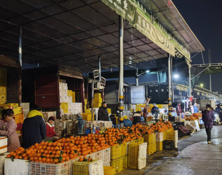 第三站聚焦柳州柳南区。在海吉星农产品批发市场,团队了解到沃柑产销价格差异显著:农户收购价每斤0.4—0.8元,分级包装后批发价0.8—1.5元,终端零售价达2—5.5元,价格受品质、品牌、渠道、季节等多重因素影响。这充分说明,健全产销对接机制、减少中间环节、提升果农议价能力与实际收益至关重要。