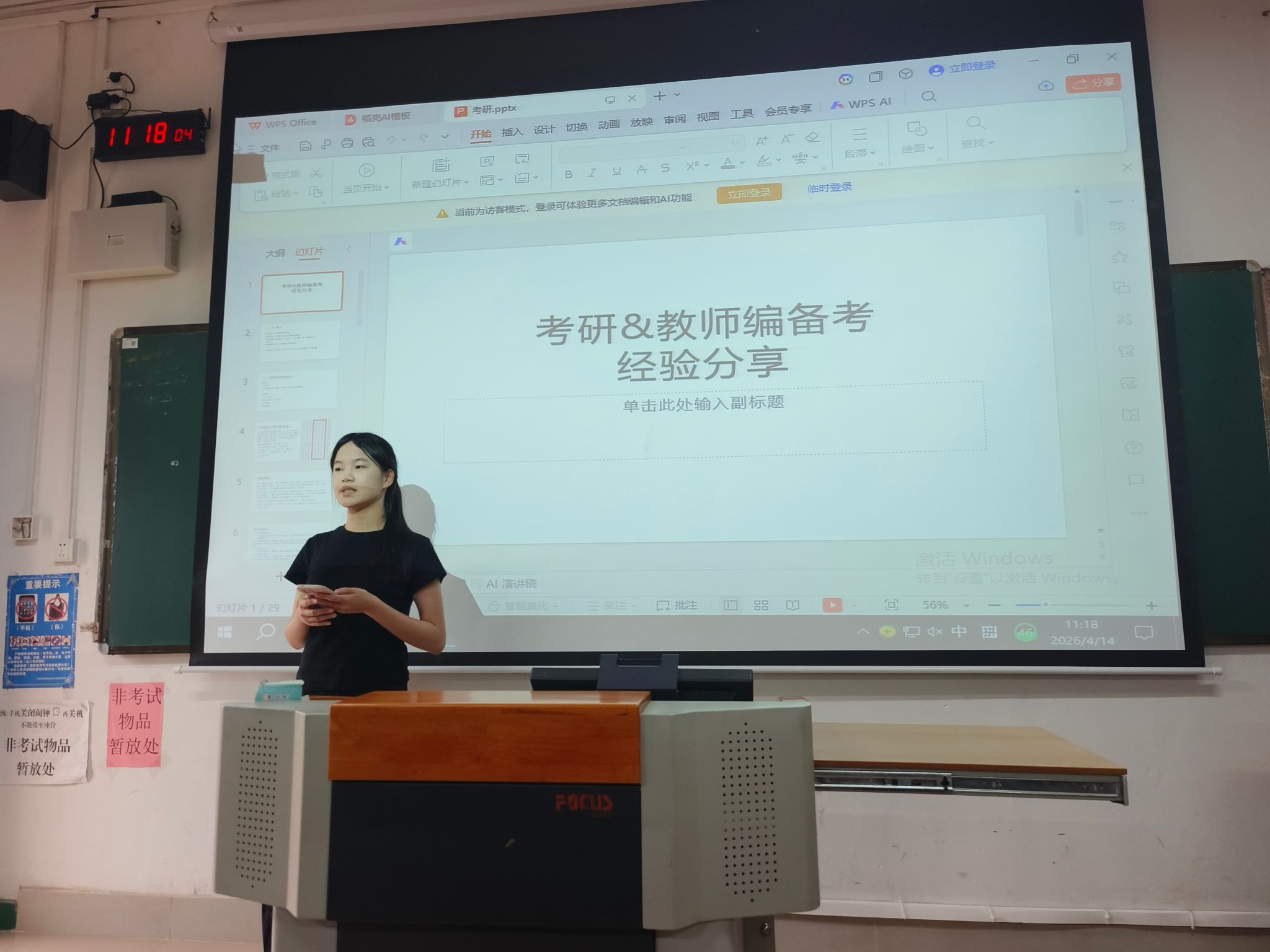 为帮助同学们明晰职业发展方向、缓解升学就业焦虑,4月14日上午,文学院 2023 级汉语言文学师范 1 班于博文楼 406 教室成功举办就业指导课暨就业升学经验分享会。本次分享会任课教师朱映运邀请了2025届硕士毕业生、西部计划志愿者李思诺线上交流,李思诺现服务于新疆生产建设兵团第十二师三坪农场子女中学;2026届本科生莫滢璐、卢键、缪丰丞到场与2023级汉语言文学师范1班分享就业经验。