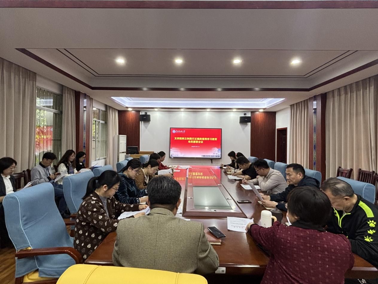 3月17日下午,文学院党委在博文楼204会议室召开树立和践行正确政绩观学习教育动员部署会。学院党委委员、领导班子成员、各党支部书记参会。