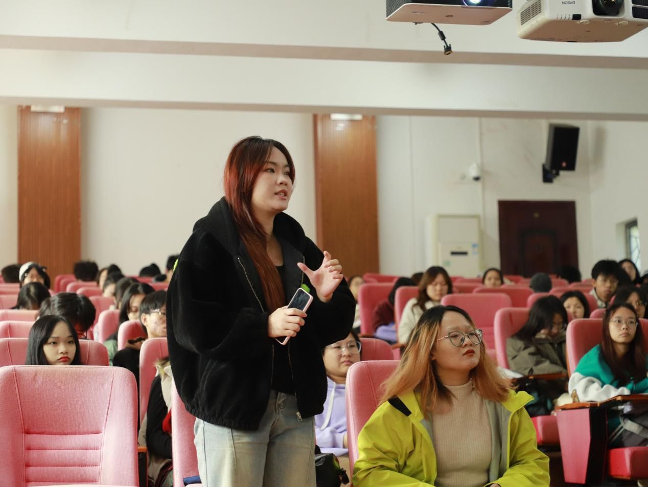 在互动问答环节,现场学生们围绕工作内容、工作地点及薪资福利等问题积极提问。汉语国际教育专业印尼语方向的学生重点关注薪酬福利制度和社保保障细则,李丰经理对此作出详细解答。他表示,公司业务布局覆盖海内外,员工社保及“五险一金”的缴纳将依据劳动合同签订的主体公司执行,国内外薪资福利体系基本一致,涵盖基础福利与额外保障。