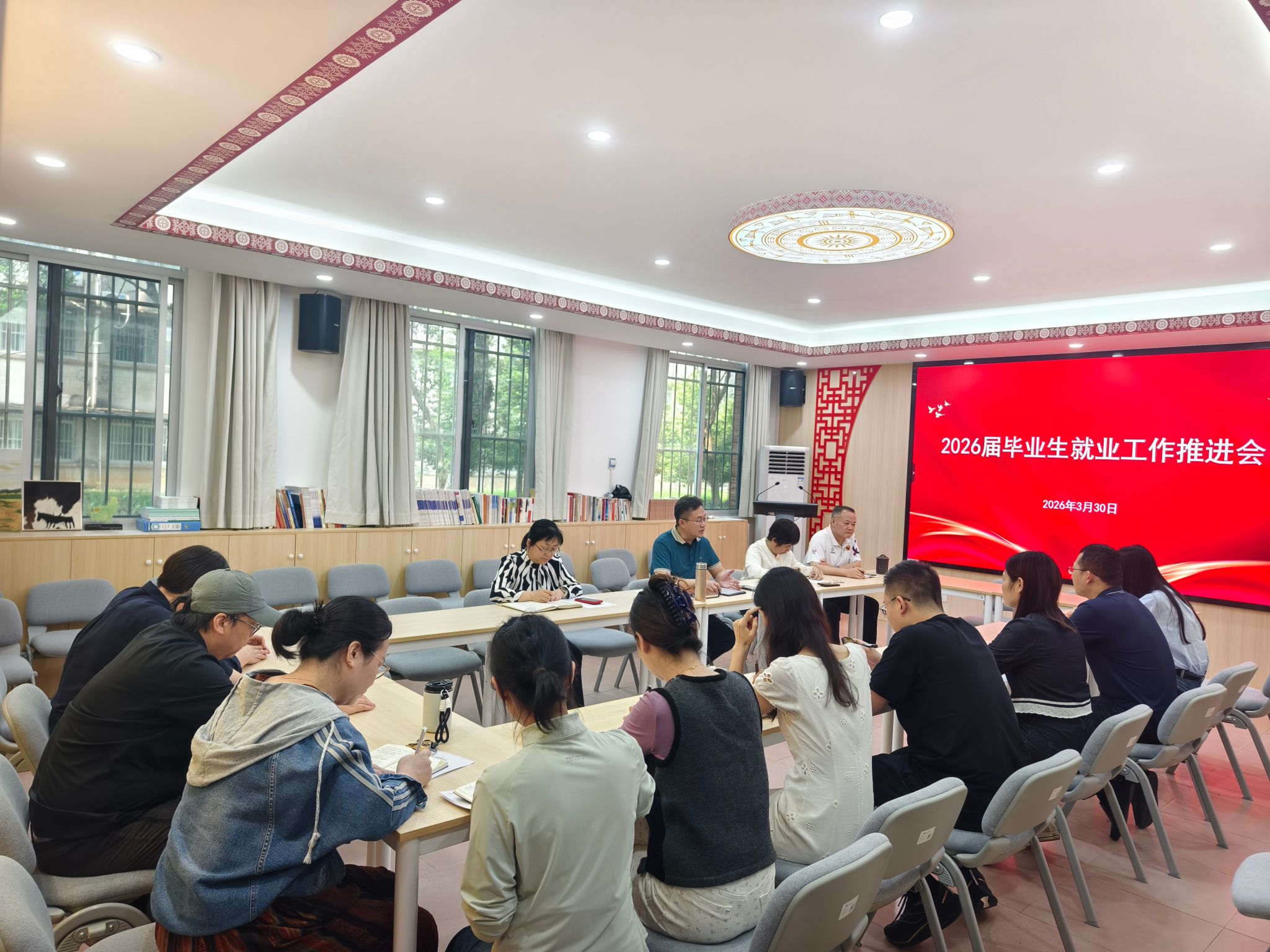 为扎实推进2026届毕业生就业工作,精准掌握就业进展、细化帮扶举措,3月30日,文学院在三坡三栋107会议室召开毕业生就业工作推进会。学院党委书记唐艳军主持会议,院长陆晓芹、副书记吴先源、副院长何山燕出席,各毕业班班主任、辅导员参加会议。